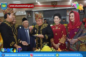Setelah Sidang Paripurna Istimewa I yang turut dihadiri oleh para Kepala Desa Se- Kabupaten OKU Selatan ini ditutup oleh Ketua DPRD, selanjutnya dilanjutkan dengan pemotongan tumpeng oleh Bupati OKU Selatan didampingi oleh Ketua TP PKK Kabupaten OKU Selatan Isyana Lonetasari Popo.