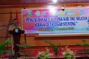 Ketua TP PKK Kabupaten OKU Selatan Isyana Lonetasari Popo dilantik menjadi Duta Cegah Stunting Kab. OKU Selatan. Stunting adalah masalah kekurangan gizi kronis yang disebabkan oleh asupan gizi yang kurang dalam waktu yang cukup lama. Dengan adanya pengukuhan ini diharapkan seluruh masyarakat dapat peduli dalam pencegahan Stunting.
