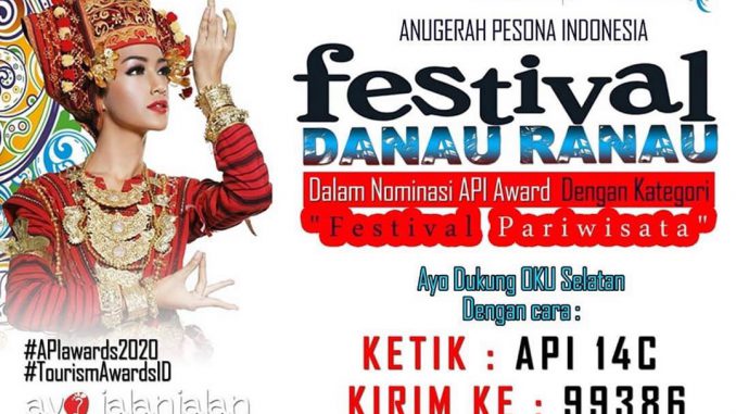 Halo sobat wong kito galo ? Ayo kito dukung Festival Danau Ranau OKU Selatan dalam nominasi API Award dengan kategori “Festival Pariwisata” dengan caro: KETIK : API 14C KIRIM KE : 99386