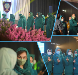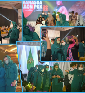 Ketua Dekranasda Kabupaten OKU Selatan Ibu Isyana Lonitasari Popo di dampingi wakil ketua Ibu Rositadevy sholehien menghadiri acara Rakerda Dekranasda dan Rakon pkk 2022.