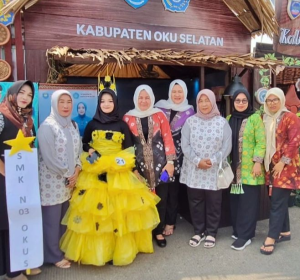 Lomba Fashion show dari SMK Negeri 3 OKU Selatan bahan dasar Plastik Limbah Daur Ulang.