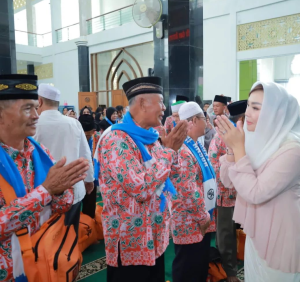 Ketua TP PKK Kabupaten OKU Selatan didampingi Wakil Ketua dan Anggota Hadir Pelepasan Keberangkatan 67 Orang Jama’ah Umroh Kabupaten Ogan Komering Ulu Selatan tahun 2023 di Masjid Agung Al- Muhtadin Muaradua. Selasa 29 Agustus 2023