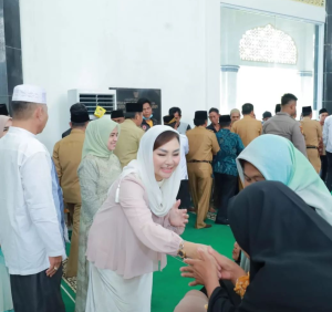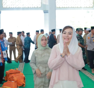 Ketua TP PKK Kabupaten OKU Selatan didampingi Wakil Ketua dan Anggota Hadir Pelepasan Keberangkatan 67 Orang Jama’ah Umroh Kabupaten Ogan Komering Ulu Selatan tahun 2023 di Masjid Agung Al- Muhtadin Muaradua.