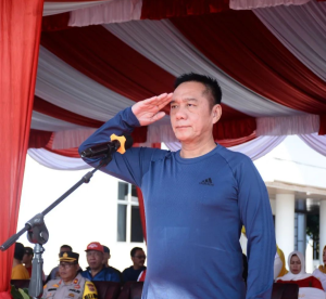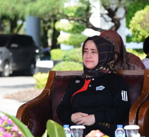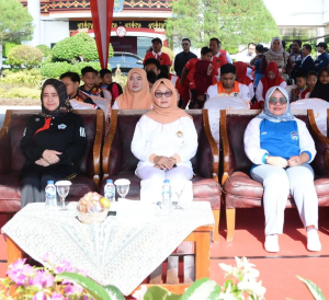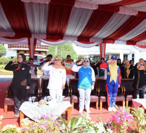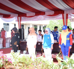 Wakil Ketua Tim Penggerak PKK, Ny. Rositadevy Sholehien Hadir Upacara Peringatan Hari Olahraga Nasional (HAORNAS) Ke- 40 Tahun 2023 di Lapangan Pemkab OKU Selatan.