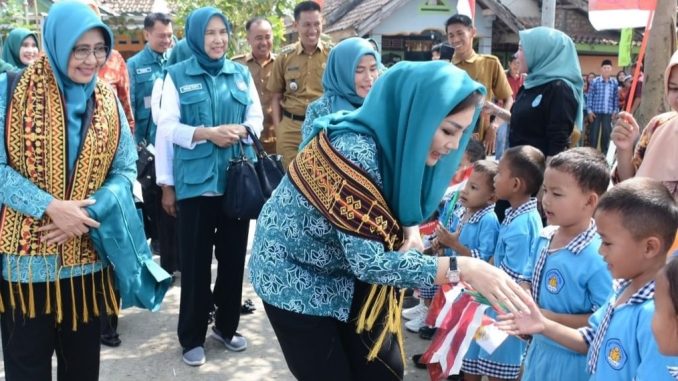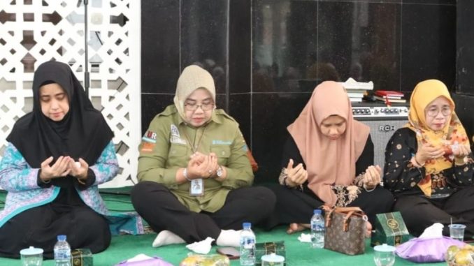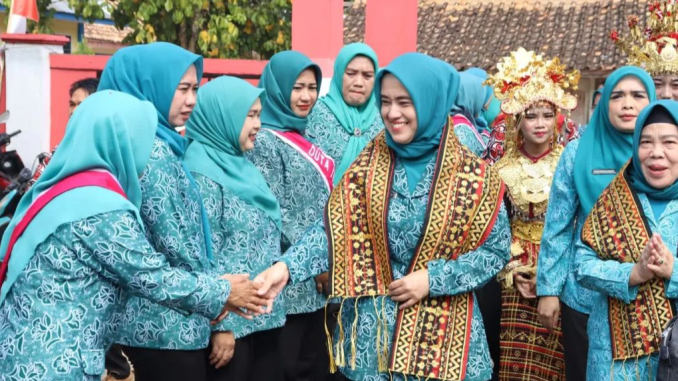 Ketua TP PKK OKU Selatan Isyana Lonitasari Popo Hadiri pengajian Akbar, Santunan Anak Yatim dan Pengukuhan Pengurus MUI desa Se-Kecamatan Simpang di Desa Bungin Campang.