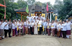 Ketua Tim Penggerak PKK Kabupaten Ogan Komering Ulu Selatan Ny. Yohana Abusama didampingi Bupati Ogan Komering Ulu Selatan, Abusama, SH. Hadiri Piodalan ke Desa Pura Khayang Tunggal Kerti Yesa di Talang Bali Dusun 9, Tanjung Jaya, Kecamatan Buay Pemaca, Sabtu. 12.05.2025