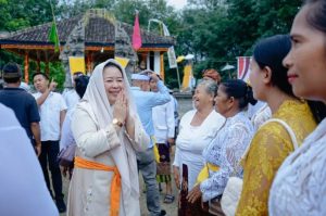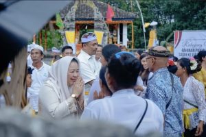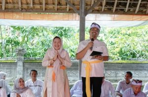 Ketua Tim Penggerak PKK Kabupaten Ogan Komering Ulu Selatan Ny. Yohana Abusama didampingi Bupati Ogan Komering Ulu Selatan, Abusama, SH. Hadiri Piodalan ke Desa Pura Khayang Tunggal Kerti Yesa di Talang Bali Dusun 9, Tanjung Jaya, Kecamatan Buay Pemaca, Sabtu. 12.05.2025