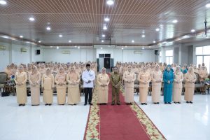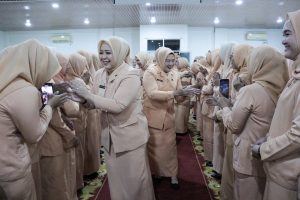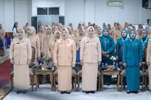 Ketua Tim Penggerak PKK sekaligus Penasihat Dharm Wanita Persatuan Kabupaten Ogan Komering Ulu Selatan di dampingi Pengurus PKK Hadiri Musyawarah Daerah(Musda) V Dharma Wanita Persatuan Kabupaten OKU Selatan dan Halal Bihalal Idul Fitri 1416 H/2025 M, 15 April 2025
