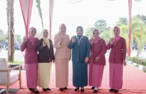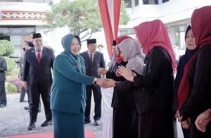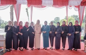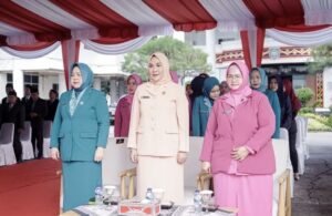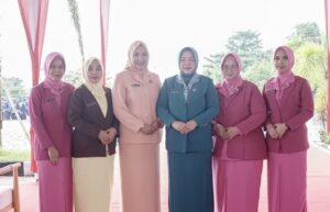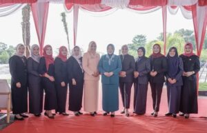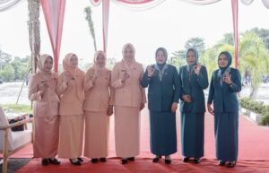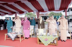 Ketua Ny. Yohana Abusama didampingi Pengurus Tim Penggerak PKK Kabupaten Ogan Komering Ulu Selatan hadiri Upacara Peringatan Hari Lahir Pancasila Tahun 2025 di lapangan Pemkab OKU Selatan