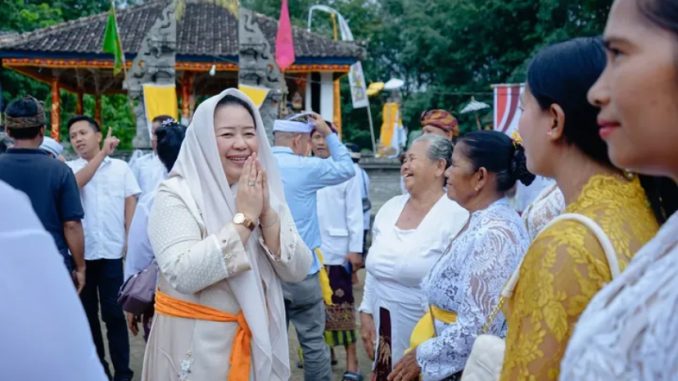 Ketua Tim Penggerak PKK Kabupaten Ogan Komering Ulu Selatan Ny. Yohana Abusama didampingi Bupati Ogan Komering Ulu Selatan, Abusama, SH. Hadiri Piodalan ke Desa Pura Khayang Tunggal Kerti Yesa di Talang Bali Dusun 9, Tanjung Jaya, Kecamatan Buay Pemaca, Sabtu. 12.05.2025